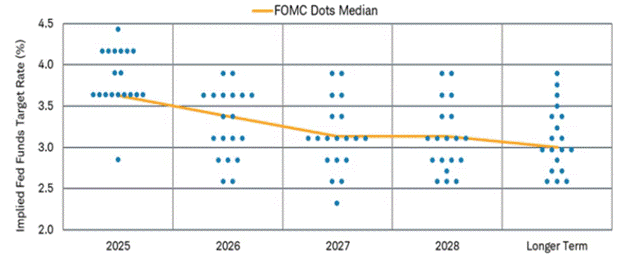 Source: Bloomberg, FOMC DOT Plot as of 9/17/2025
